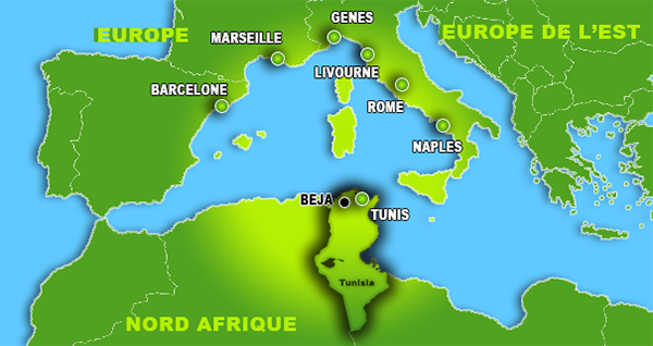 - Entre le port de Tunis et Marseille (France) : 3 Départs réguliers par semaine dans les 2 sens.